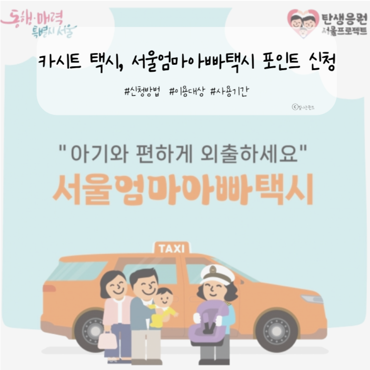 서울엄마아빠택시 포인트 이용대상, 신청방법, 제공내역, 사용기간, 아기와 편하게 외출하세요!