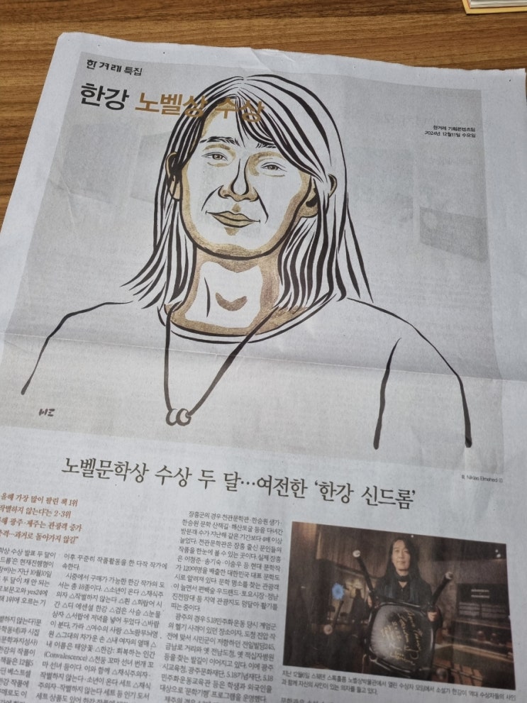 2024.12.11. 수요일 한겨레 특집 기사 발췌 노벨문학상 수상 두 달 여전한 '한강 신드롬' 한강 ...