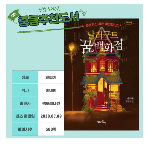 중학생 판타지 소설 추천 「달러구트 꿈 백화점」 줄거리 리뷰