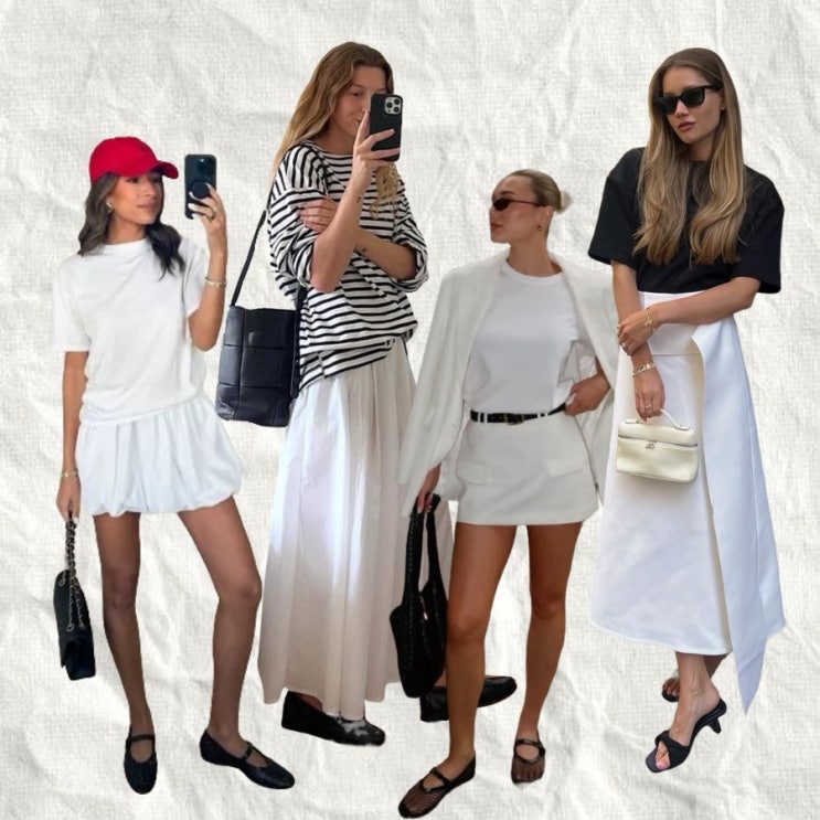 스트릿패션 3464 : 청량하고 우아하고 다하는 여름 흰스커트 데일리룩 (롱스커트, 플레어스커트, 미니스커트 포함)