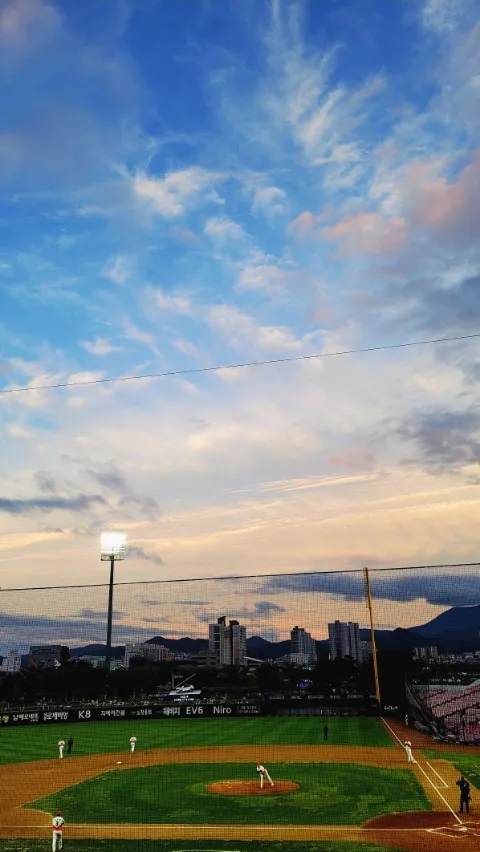아는 동생이랑 금요일 삼성전 보러가따옴 종일 흐렸는데 경기 시작하면서부터 개서 하늘이 멋졌고 바람도 ...