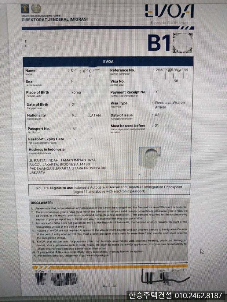 인도네시아 자카르타 공항 입국심사 후기 쓸게요~ 인도네시아에 입국하기 위해서는 관광비자 -B1-여행 관...