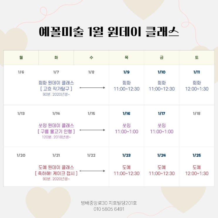 [방배동 미술학원] 예꼴미술 겨울방학 특강: 원데이 클래스(25.01)