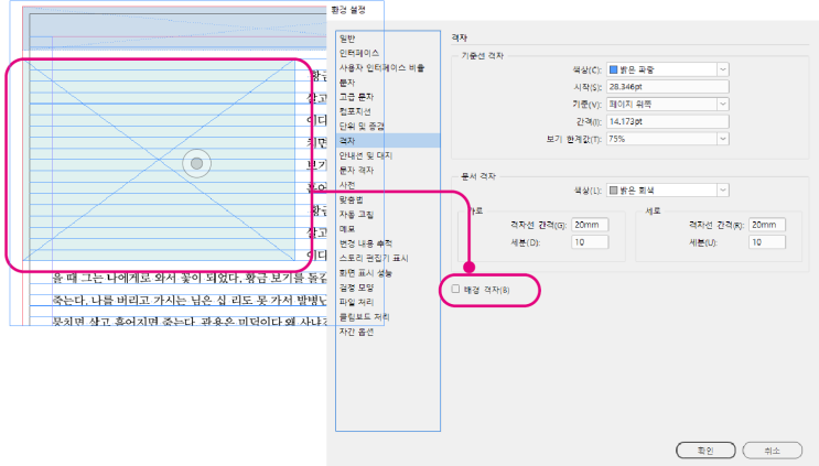 학습지 조판만 하다 보면 그다지 격자를 사용할 일이 없는데 간혹 개인적으로 단행본 조판을 의뢰하는 분들...