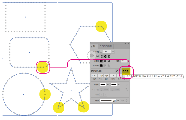 일러스트에서 간격이 일정한 점선 만들기