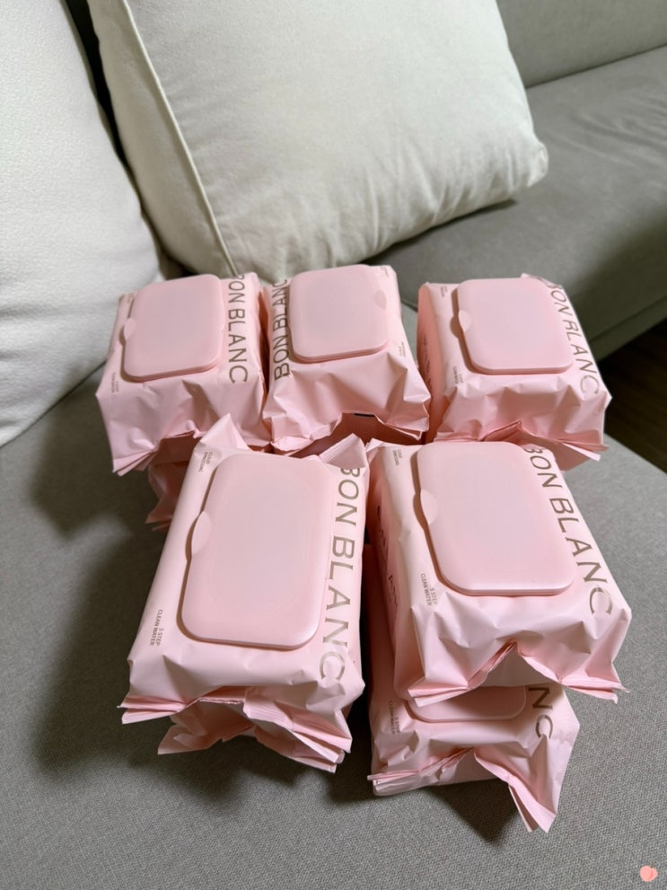 본블랑 물티슈 100매 캡 본블랑 물티슈 100매 10개 구성인데요. 디자인도 핑크색이라 그냥 식탁에 두기도 ...