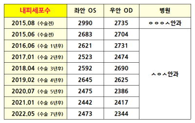 토릭알티플렉스 8년차 대학병원 안과 방문, 내피세포수 감소 기록