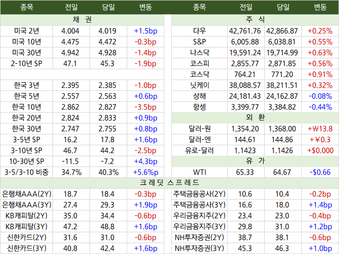 미국금리가 단기 위주로 약세를 보이며 플랫 마감하였습니다. 미-중 무역협상이 진행되고 있는 가운데 3년...