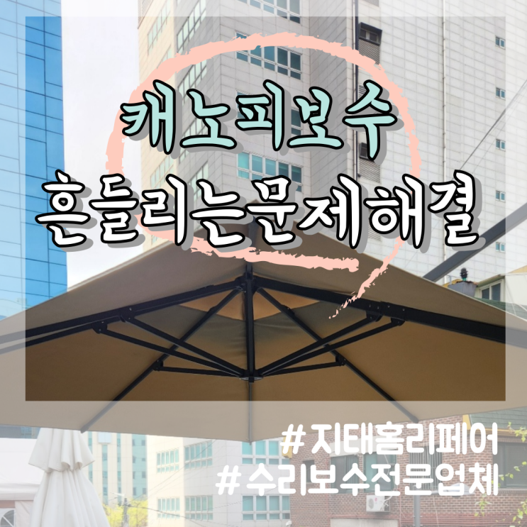 카페 야외 흔들리는 대형 파라솔 우산 수리