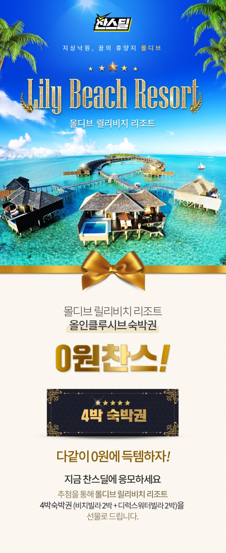 [위메프]몰디브 4박 숙박권 0원 찬스!