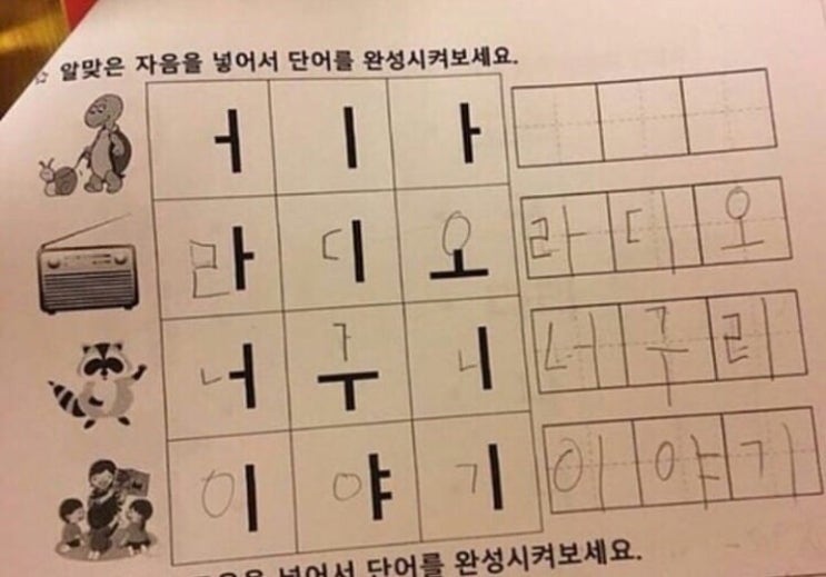 거북이 달팽이 문제 빈칸에 알맞은 자음이 뭘까요? #어디가 ? #더디다 ? 라디오 너구리 이야기 정답 아시는...