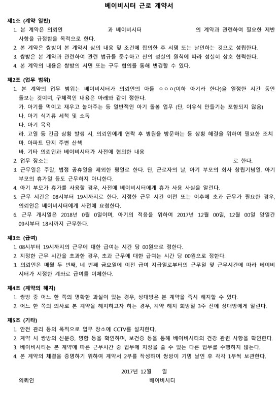 베이비시터 근로계약서 작성