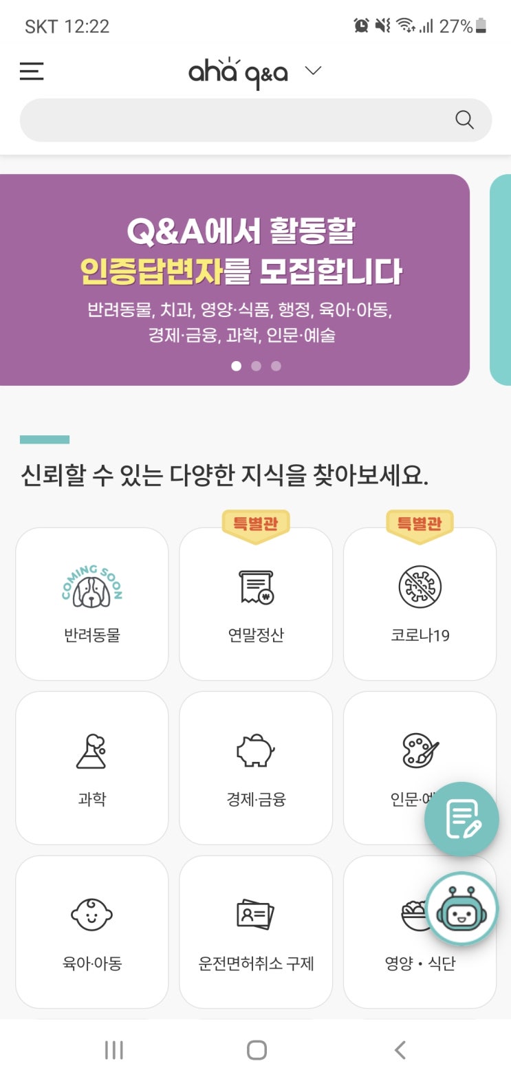 아하토큰 추천인 SCAB8L믿을 수 있는 질문 답변 플랫폼을 지향하는 아하 활동 및 출석으로 아하코인을...
