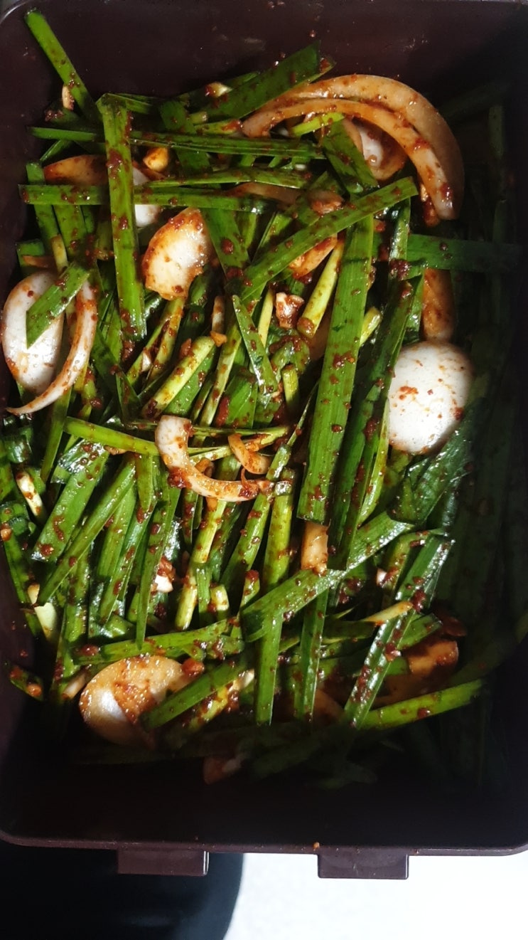 갑자기 부추김치가 먹고싶어 만들었는데 사진이 발사진이다.ㅠ 매운고추가루라서 맛이 있어도 매운걸 멀리...