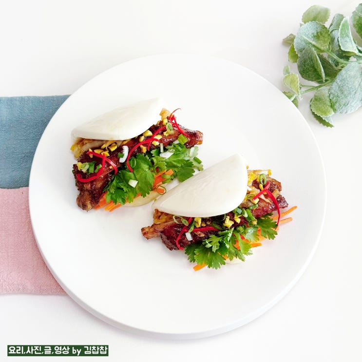 바오번 꽃빵 버거 만들기 중국식 돼지 등갈비 바베큐 폭립 차슈 요리 소스 레시피