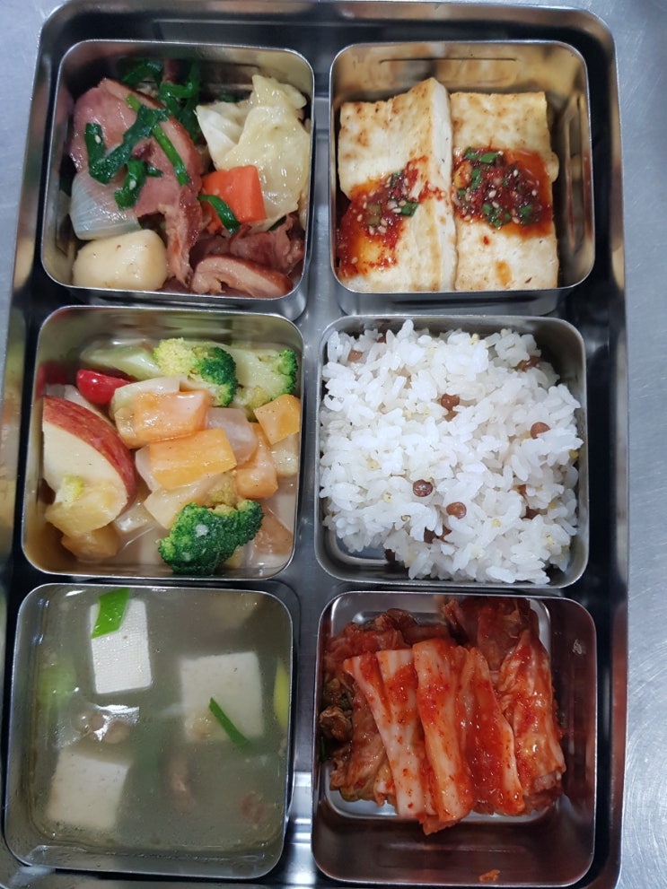오늘의메뉴20240222 잡곡밥 시금치된장국 야채소불고기 단호박어린잎샐러드 쑥갓두부무침 김치 쑥갓두부무...
