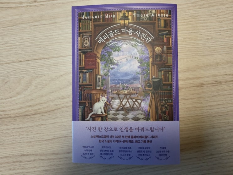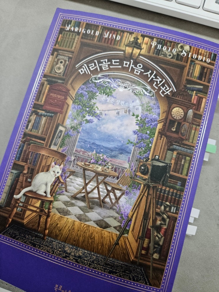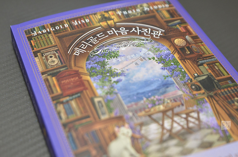 표지가 이쁜 메리골드 마음사진관 책입니다. 하얀 고양이가 새초롬하게 의자에 앉아있네요~ 사진을 찍기위...