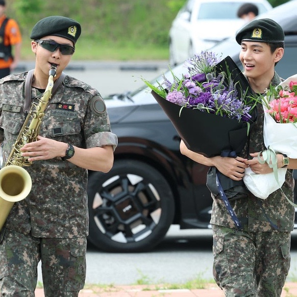 BTS의 RM과 뷔가 군 복무를 마치고 오늘 오전 만기 전역을 하였습니다 내일은 지민과 정국이 제대할 ...