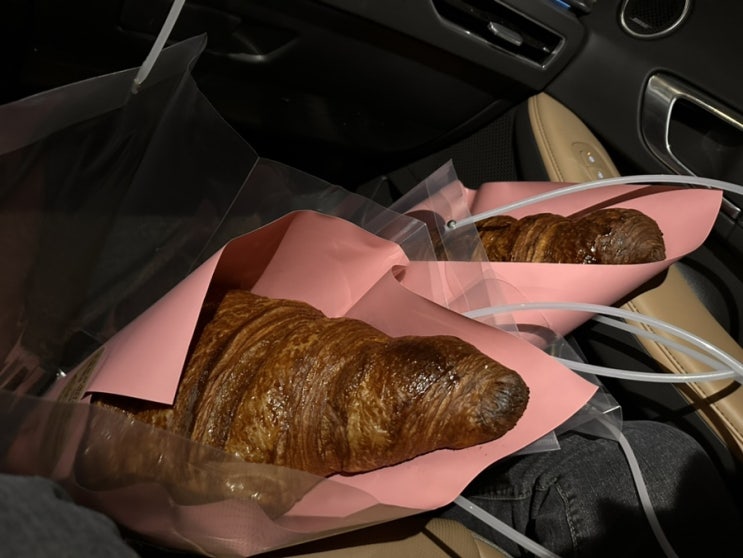 옌~하! 살짝 늦긴했지만 유행이였던? 대왕 크로와상을 포장해왔어요! 두개사왔는데 앞자리가 꽉차더라구요 ...