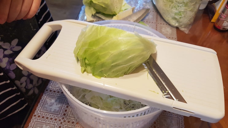 + + +양배추 채칼 매번 감자 깎는 칼처럼 생긴 채칼로 양배추를 썰어 먹곤 했는데썰다보니 손 다치...