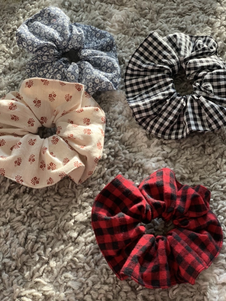 학교축제 알뜰장터에 가져갈 헤어슈슈 네개만들기. 쓰던 무언가를 가져가야하는데 마땅치 않아 뜯지도 않은...