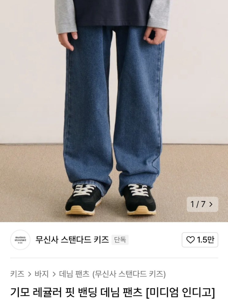 [아이 바지 추천] 무신사스탠다드 키즈 기모 레귤러 핏 밴딩 데님 팬츠 미디엄 인디고 110사이즈 (+남아 착샷)