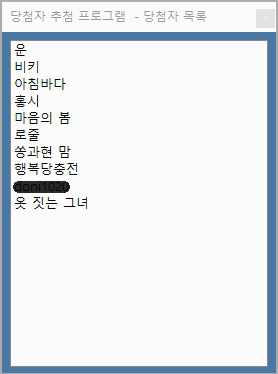 한 분께서 다른곳에서 당첨되셔서 재추첨 했습니다. 같은 닉네임이 있을 수 있으니 아래 영문 아이디로 다...