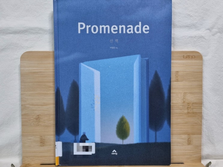 Promenade 산책 / 이정호 / sang 푸른 빛을 띤 책 표지, 손에 등불을 든 사람이 문이 열린 어딘가로 들어...
