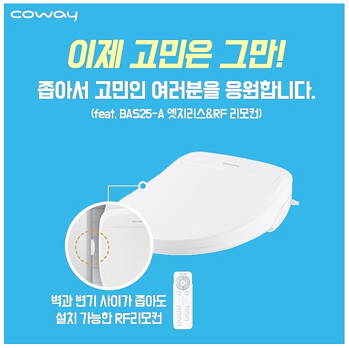 소형변기비데/수입변기, 리모컨비데렌탈신청/설치가 어려운 작은 변기 코웨이비데BAS25-A
