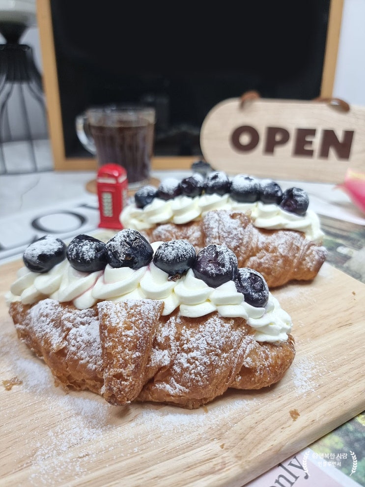 홈카페 레시피 생크림빵 휘핑크림으로 생크림 만들기 블루베리 크루아상 생크림 샌드위치 by 만들기 & ...