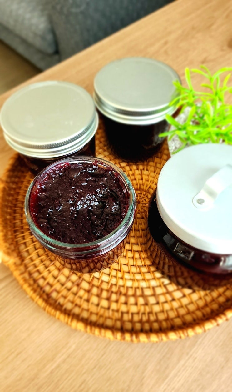냉동 블루베리 잼 만들기 매일 아침 빵을 구워 계란 프라이를 올려 먹는 남편 때문에 잼이 늘 필요해서 넉...