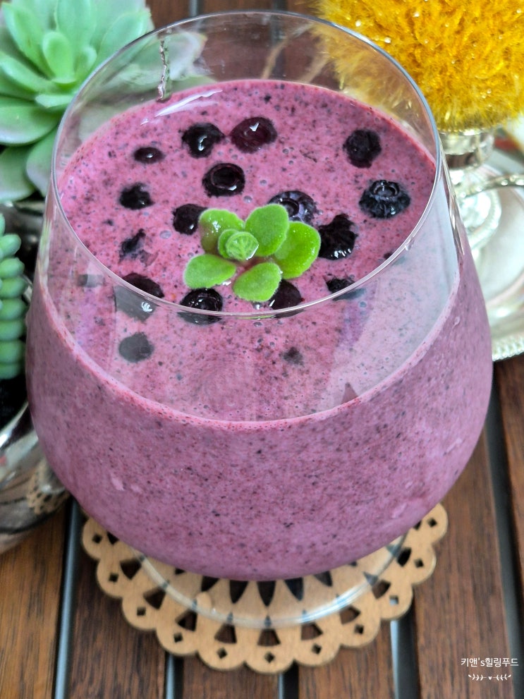 블루베리 요거트 스무디 만들기 냉동블루베리 플레인요거트 스무디 블루베리요거트 스무디 홈카페로 과일을...
