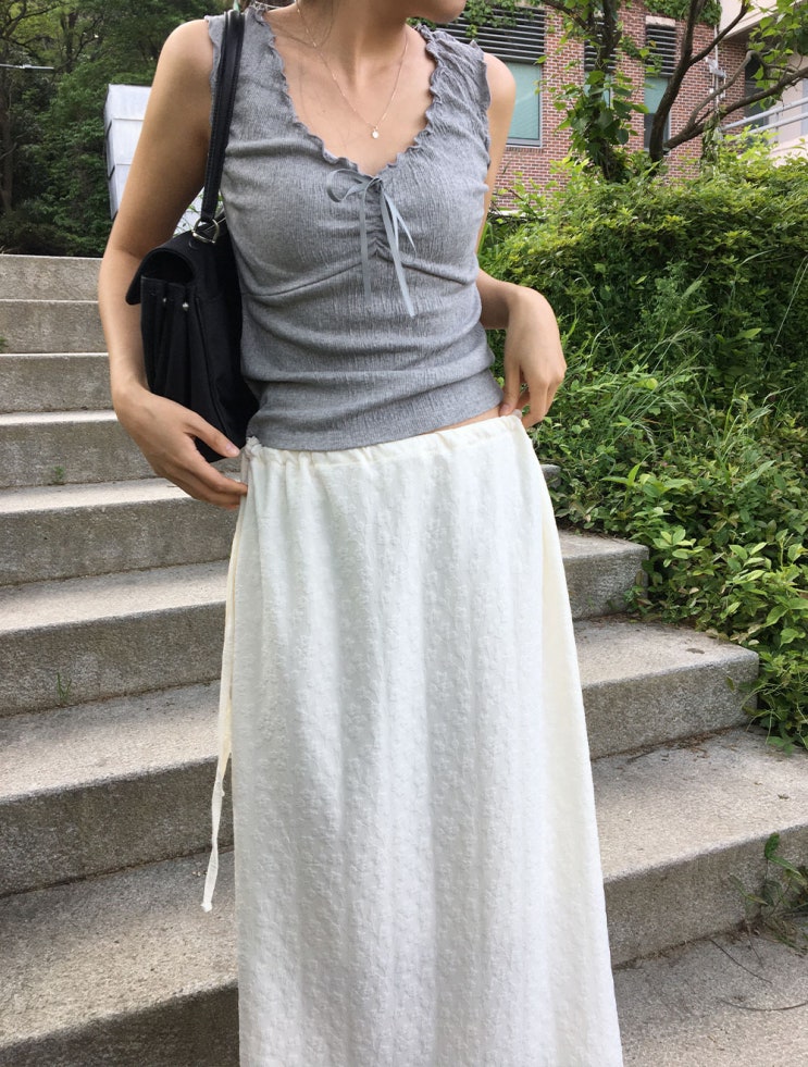 마인드 플라워 자수 스트링 스커트 (2color)