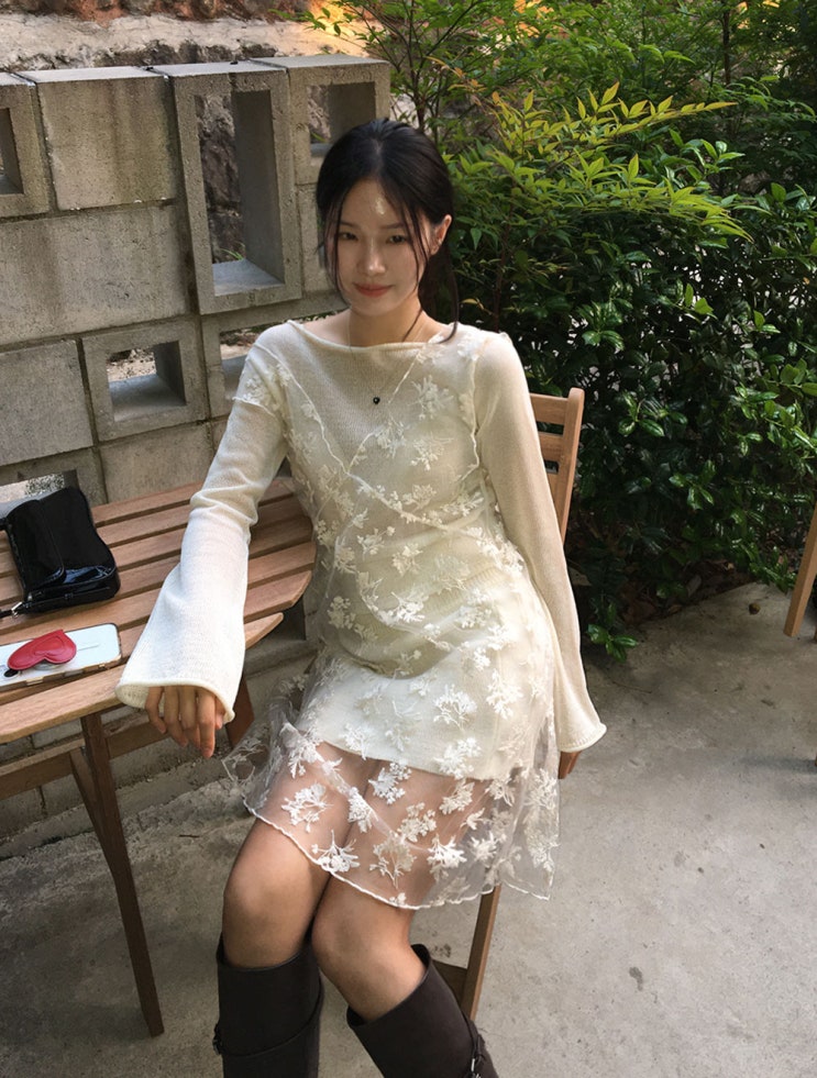 데이지 자수 시스루 원피스 (1color)