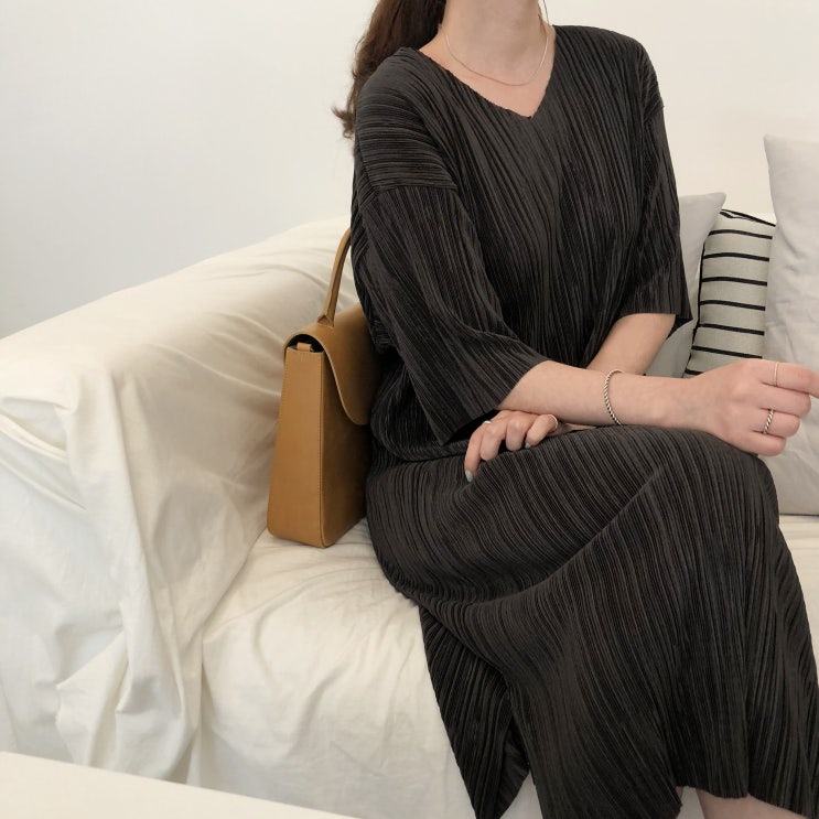 브이넥플리츠원피스