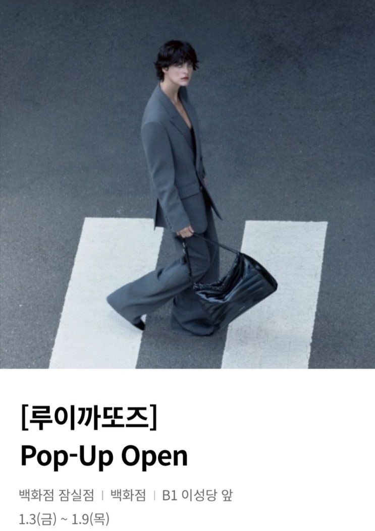 2025년 1월 6일 월요일이다 루이까또즈 핸드백이 롯데백화점 잠실점에서 팝업스토어를 운영한다 기간은 202...