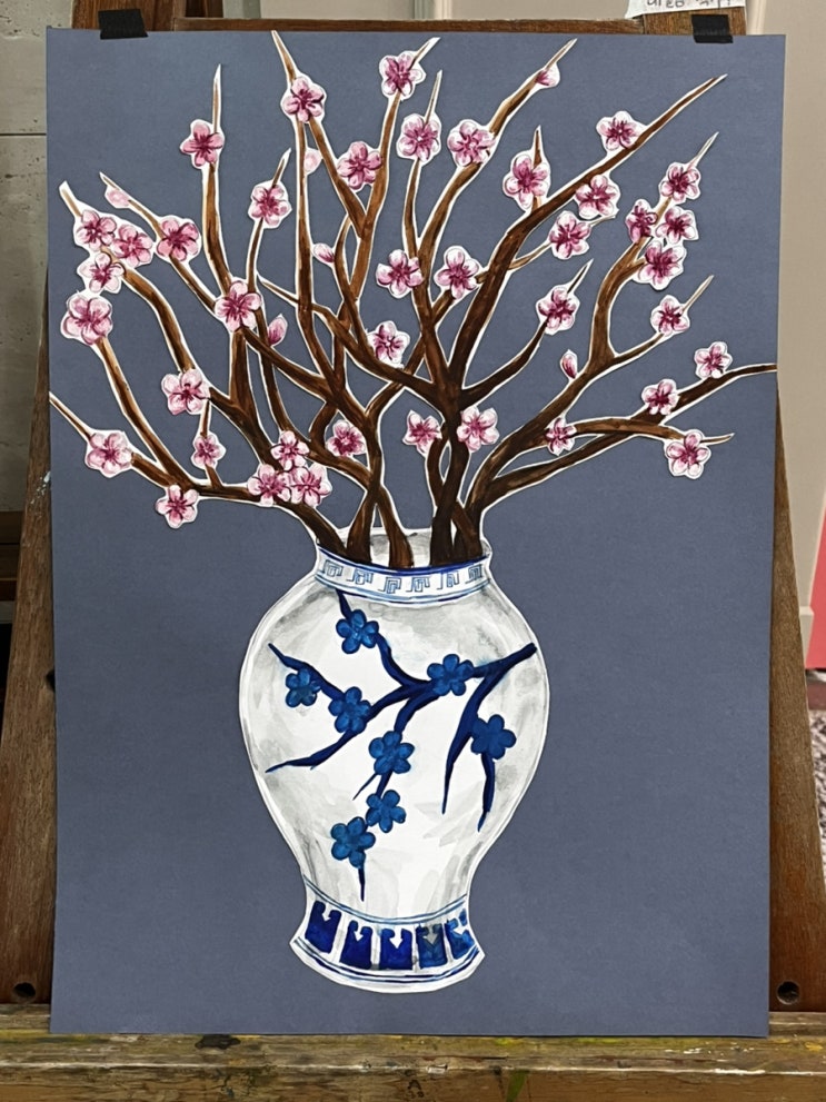 해밀동 꿈을담은미술학원(해밀마을 스카이드림 상가 6층) 2023년 초봄 수업했던 청화백자 유치부의 청화백...