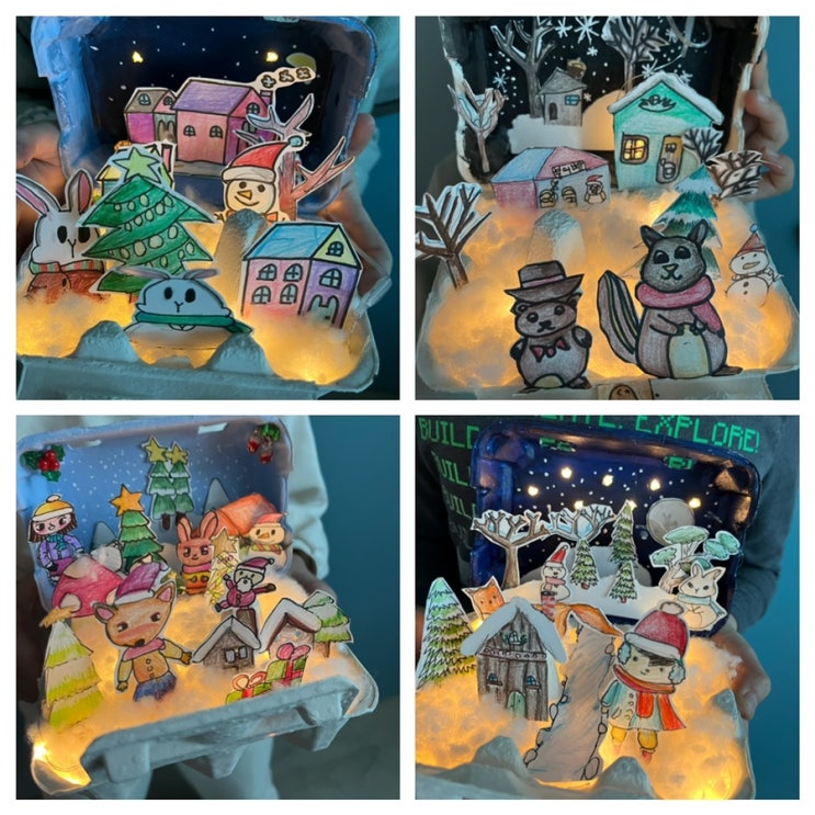 유치부의 여름 수업이었던 계란 판 바다에 이어 초등부의 겨울 수업인 계란 판 속 내가 그린 작은 겨울 이...