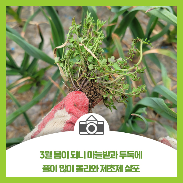 3월 봄이 되니 마늘밭과 두둑에 풀이 많이 올라와 제초제 살포