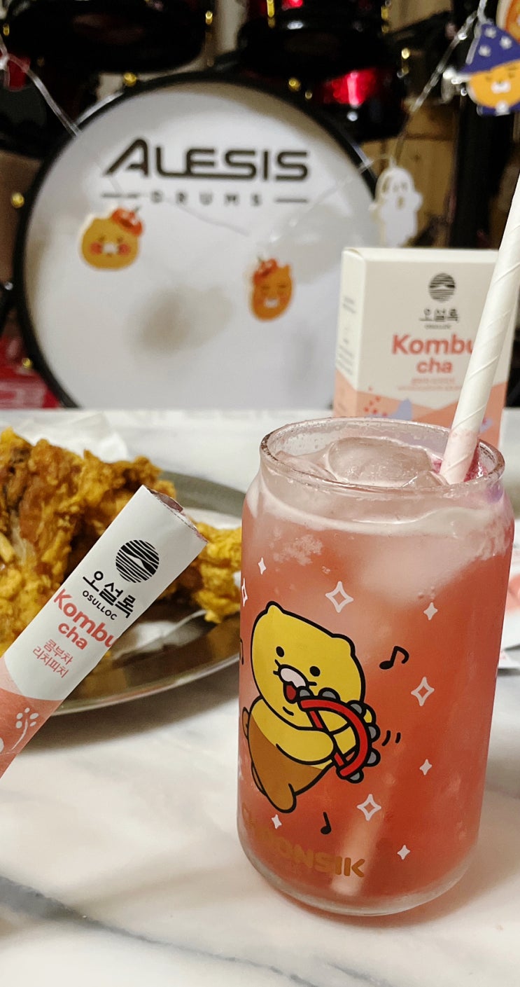 오설록콤부차 리치피치 상큼하게 파티음식과 잘 어울려요!