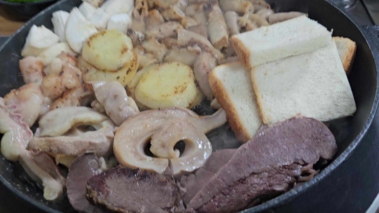평창 대화리에서 냉이캐고 오니 배도 고프고 큰언니 생일지났다고 작은 언니가 곱창구이랑 전골 한턱쏘셨다...