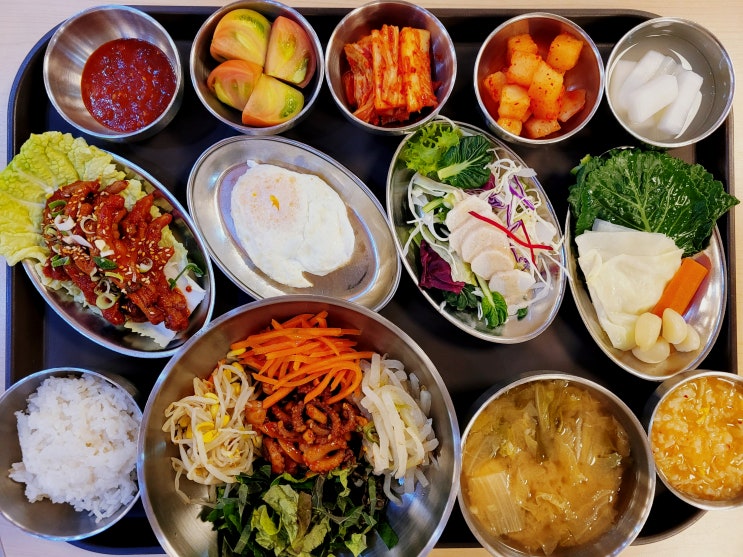 5월 15일 (목) 중식메뉴 백미밥 낙지볶음비빔밥 배추된장국 닭발볶음 계란후라이 마샐러드 모듬숙쌈 배추김...