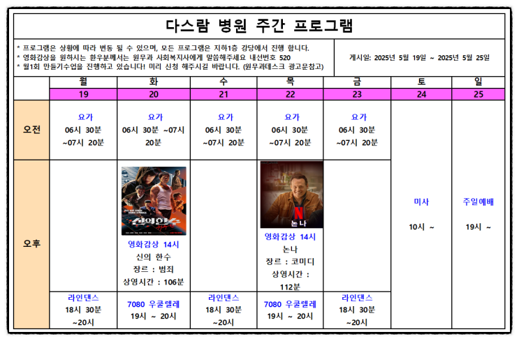 다스람요양병원 5월 3주차 주간프로그램
