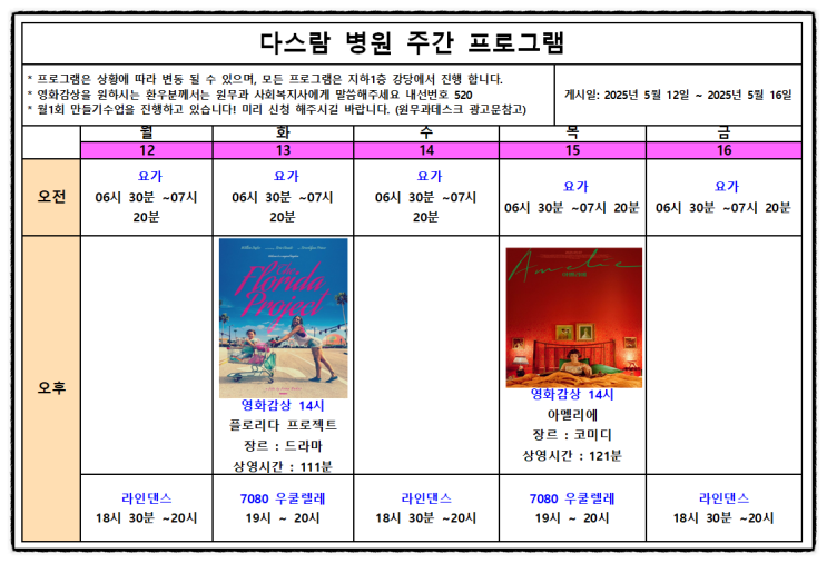 다스람요양병원 5월 2주차 주간프로그램