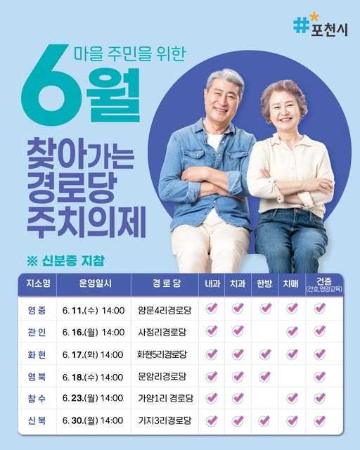 찾아가는 경로당 주치의제! 어르신들의 건강을 위해 전문 의료진이 직접 찾아갑니다! 6월 찾아가는 경로당 ...