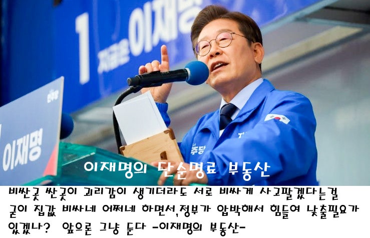 부동산 집값에 관여하지 않는다. [이하는 이재명 후보의 말] 비싼 곳 싼 곳이 괴리감이 생기더라도 서로 비...