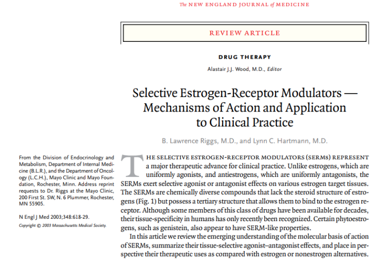Selective Estrogen-Receptor Modulators (SERM) : 선택적 에스트로겐 수용체 조절제 —작용 기전과 임상 적용