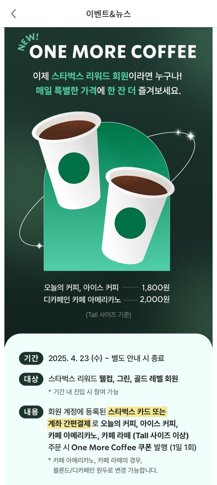스타벅스 커피 60% 할인 받는 방법 원모어커피 쿠폰 1,800원에 마시려면?