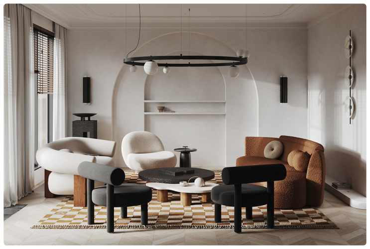 거실인테리어 가구배치와 암체어의 조합이 예쁜곳