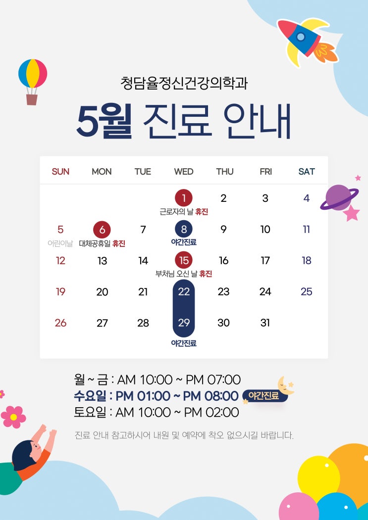 청담율정신과 2024.7월 진료안내